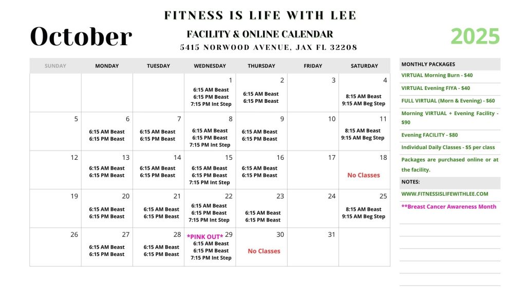 * PLEASE NOTE – Purchases are made either by Full Month Package found in Fitness Products or individually by class in the LIVE Workouts drop down menus. REMINDER, individual session purchases are not allowed once the session has begun.