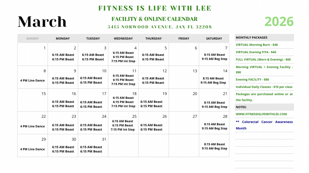 * PLEASE NOTE – Purchases are made either by Full Month Package found in Fitness Products or individually by class in the LIVE Workouts drop down menus. REMINDER, individual session purchases are not allowed once the session has begun.
